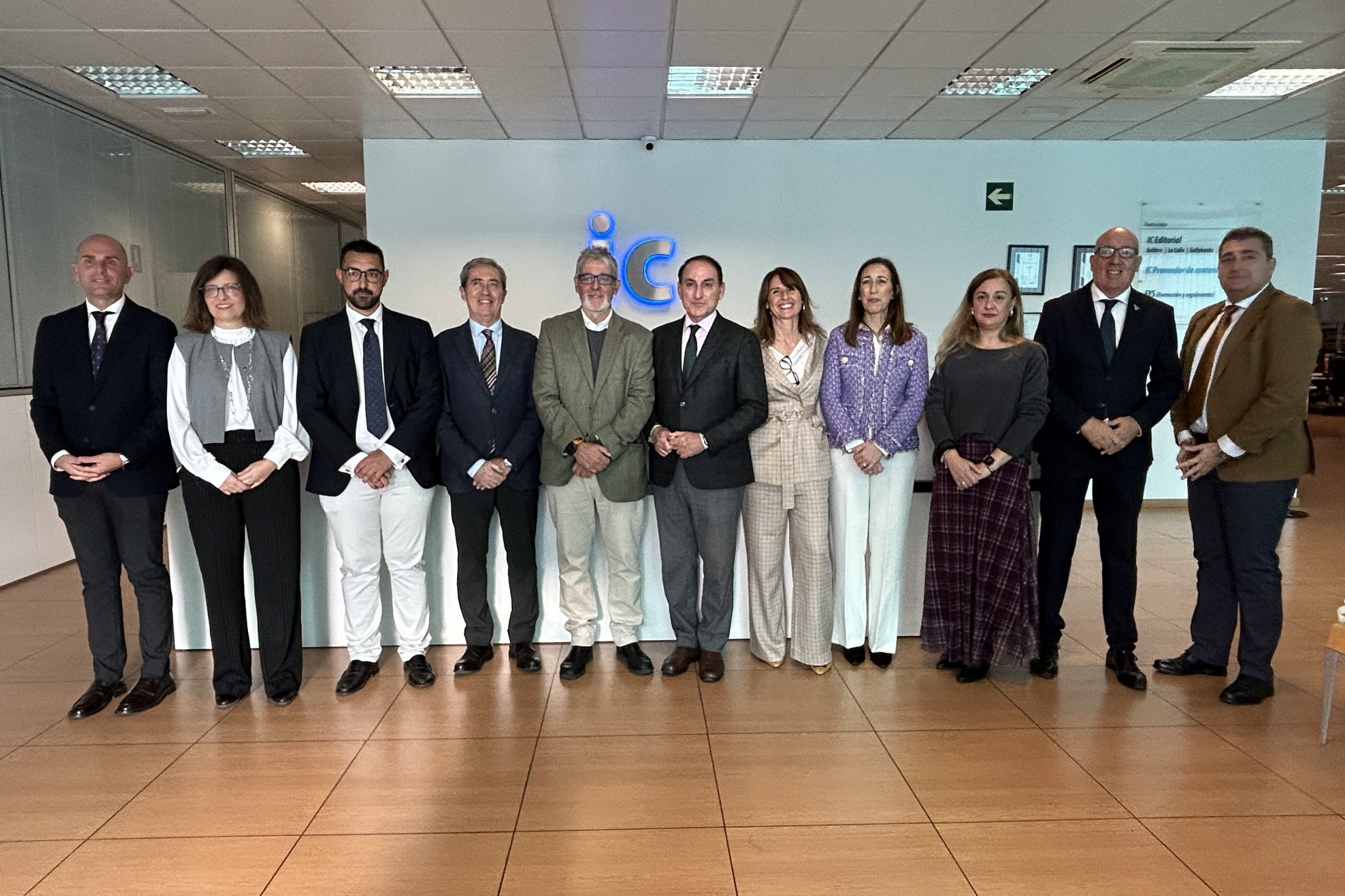 Durante su visita al municipio, miembros de la cúpula de la CEM, con su presidente Javier González de Lara al frente, pudieron conocer las instalaciones de IC Editorial y Audiolís, ubicadas en el Polígono Industrial de Antequera.