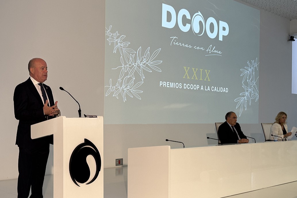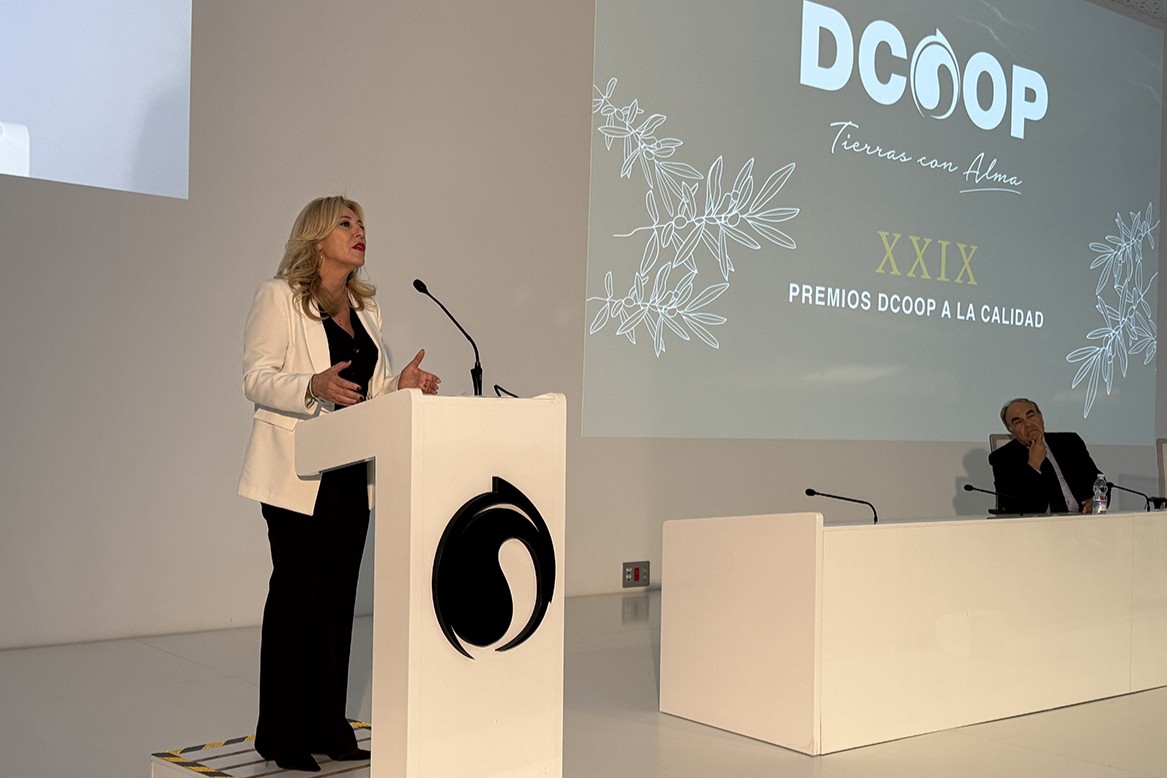 El auditorio Olea Mare acogió este martes el acto de entrega de los XXIX Premios Dcoop a la Calidad del Aceite de Oliva Virgen Extra de la campaña 2024-25, que contó con la presencia, entre otros, de la consejera de Economía, Hacienda y Fondos Europeos de la Junta de Andalucía, Carolina España; el alcalde de Antequera, Manolo Barón, y el presidente de esta grupo agroalimentario, Antonio Luque.