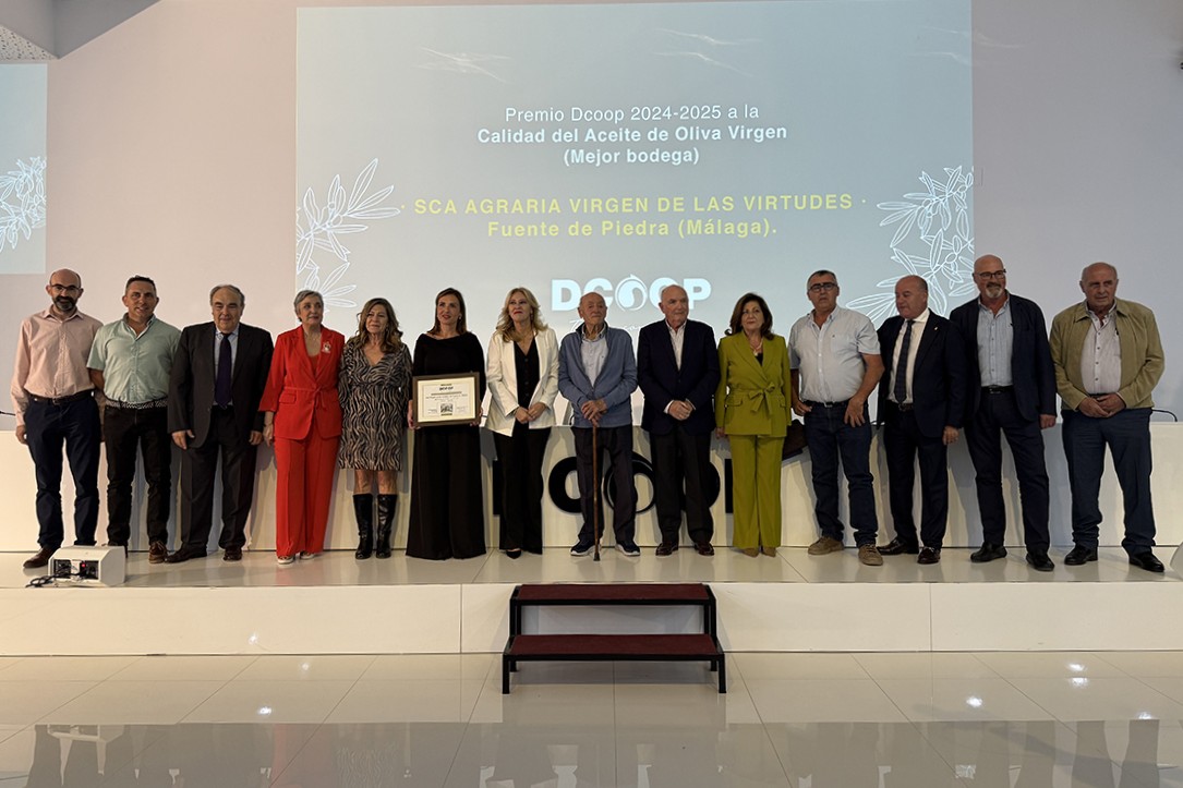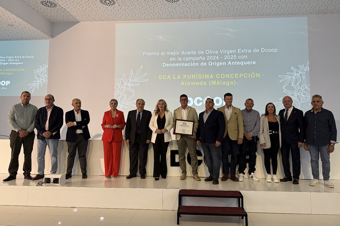 Entre las cooperativas galardonadas, cuatro de la comarca de Antequera: SCA Olealgaidas (Villanueva de Algaidas) por producir el Mejor Aceite de Oliva Virgen Extra de la campaña en este grupo; la SCA Agraria Virgen de las Virtudes (Fuente de Piedra), a la Calidad del Aceite de Oliva Virgen (Mejor bodega); SCA La Purísima Concepción (Alameda) por el Mejor Aceite de Oliva Virgen Extra con DOP Antequera, y la SCA Olivarera San Benito de Campillos, que logra el primer el Premio al Mejor Aceite de Oliva Virgen Extra Ecológico de Dcoop,