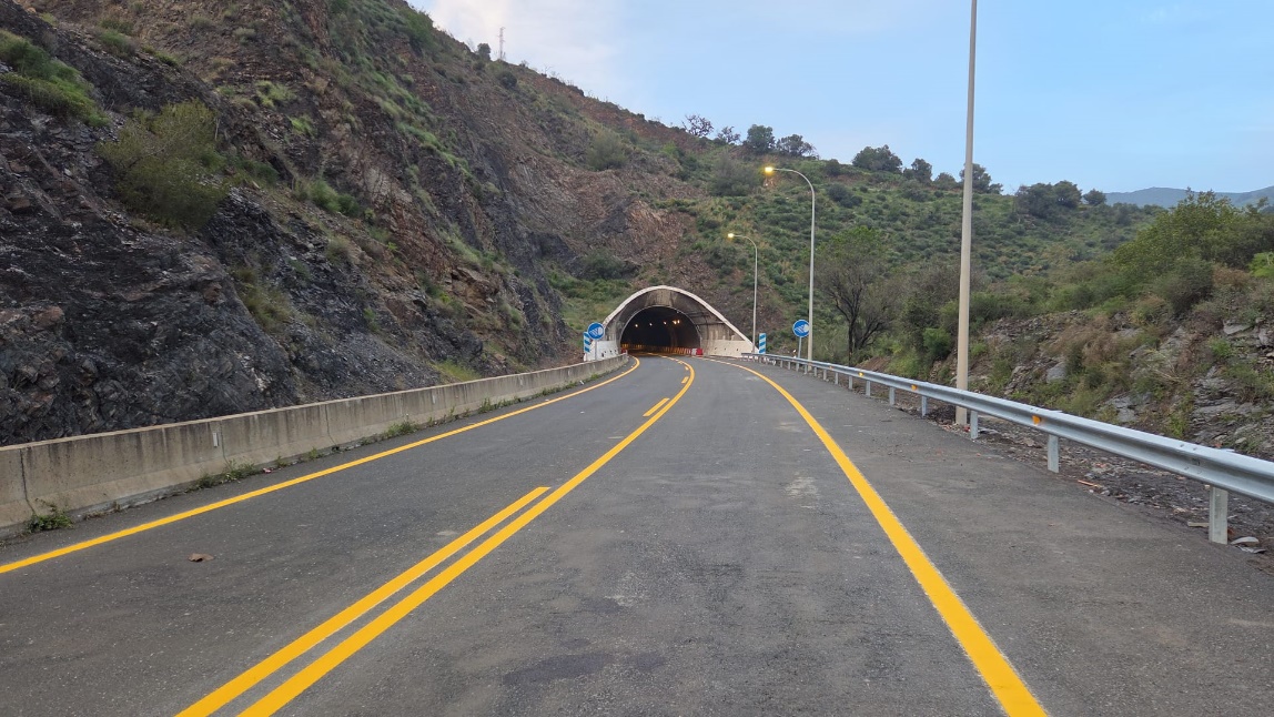 Vuelve a la normalidad la circulación en la autovía A-45 a la altura de los túneles de Casabermeja, tras la apertura de la zona cortada debido a un desprendimiento cercano al túnel 4, producido hace tres semanas.