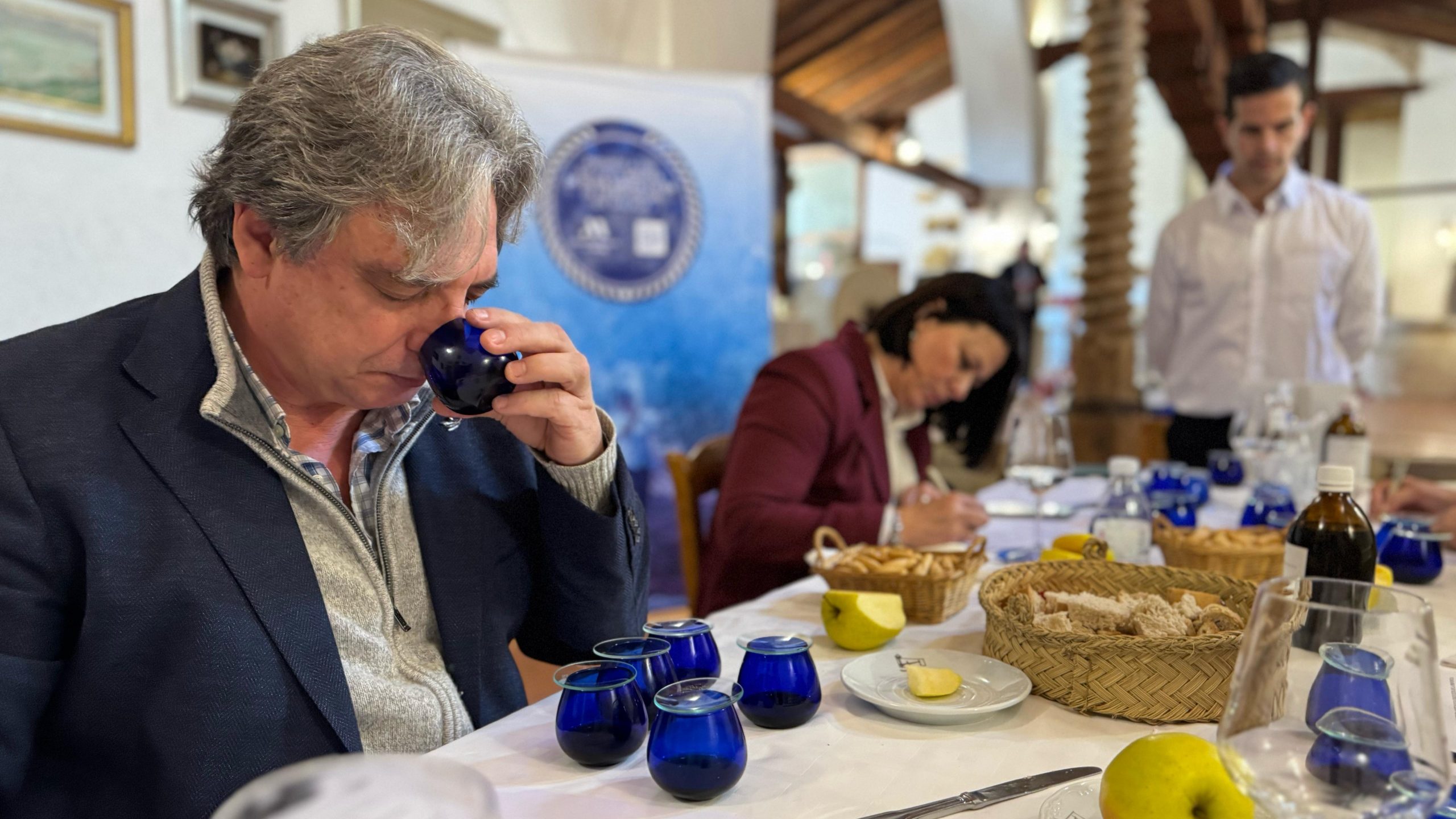 Cata de aove por parte del jurado de los XXIII Premios Sabor a Málaga al Mejor Aceite de Oliva Virgen Extra (febrero 2025)
