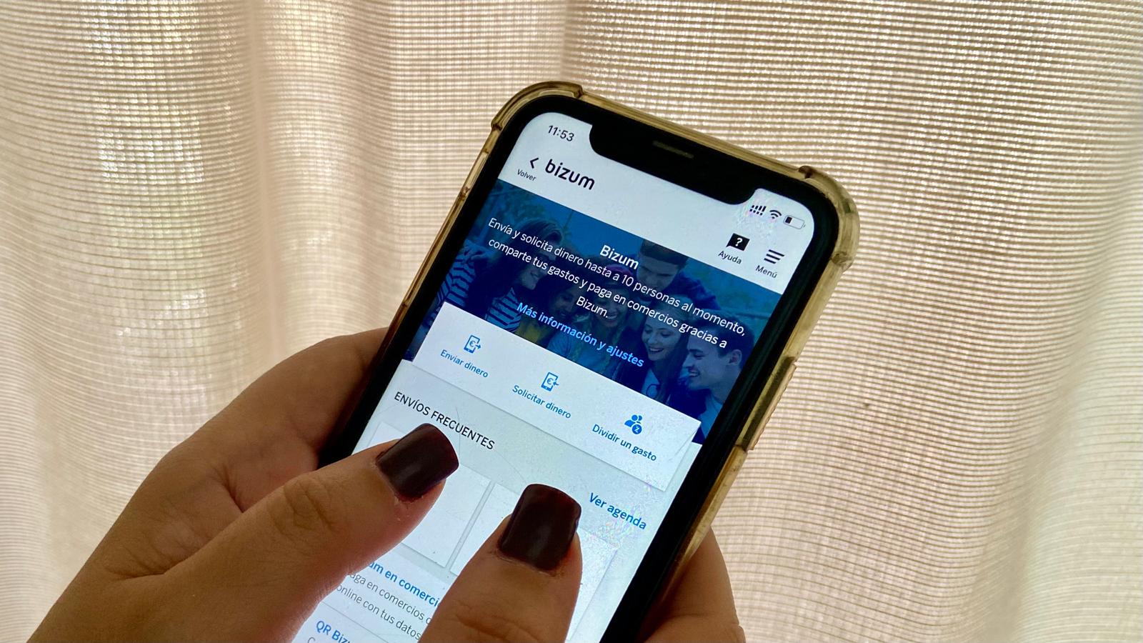 Usuaria utilizando su aplicación de Bizum en el teléfono móvil (abril 2025)