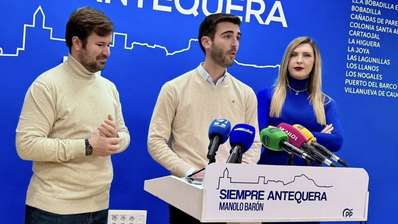 Fernández (centro), junto a García y González, en la sede del PP de Antequera
