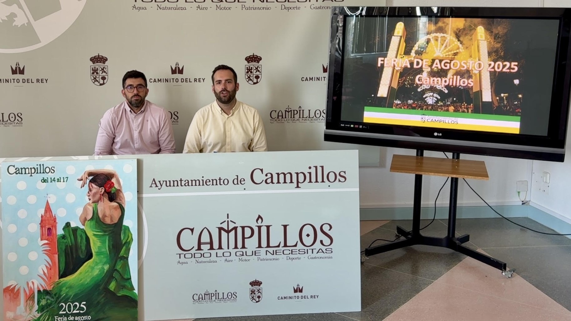 El alcalde de Campillos, Daniel Gómez, y el concejal de Festejos, Adrián Cañamero, presentando la programación de la Feria de Agosto